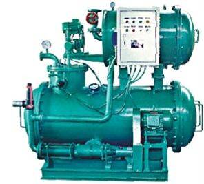 在真空室中裝有由多片同規(guī)格不同波紋形狀的環(huán)氧夾布玻璃瓦組裝而成的波紋板組,用于初級聚集分離水中的含油成份。