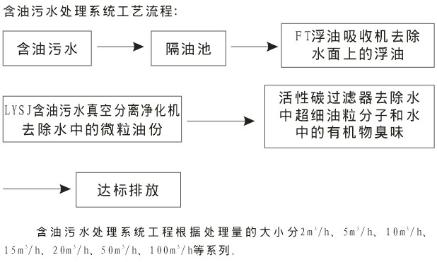 含油污水凈化處理系統(tǒng)是我公司在吸收國內(nèi)外先進(jìn)油水分離技術(shù)和經(jīng)驗(yàn),綜合利用FT型浮油吸收機(jī)、LYSJ型含油污水真空分離凈化機(jī)、活性碳過濾器等設(shè)備的過濾原理和使用環(huán)境的基礎(chǔ)上而形成的一套含油污水處理凈化、達(dá)標(biāo)排放、回收利用的先進(jìn)處理工藝流程,本系統(tǒng)適用于火力發(fā)電廠、煉油幫、儲油庫區(qū)含油污水的處理,使之處理后排放水達(dá)到國家GB8978綜合排放標(biāo)準(zhǔn)(水中含油量≤5mg/L,懸浮物≤30mg/L),同時(shí)收集的廢油回收利用。本系統(tǒng)工程具有占地面積小、操作維護(hù)方便、處理效果好、投資少等優(yōu)點(diǎn),可以替代傳統(tǒng)的氣浮法工藝。
